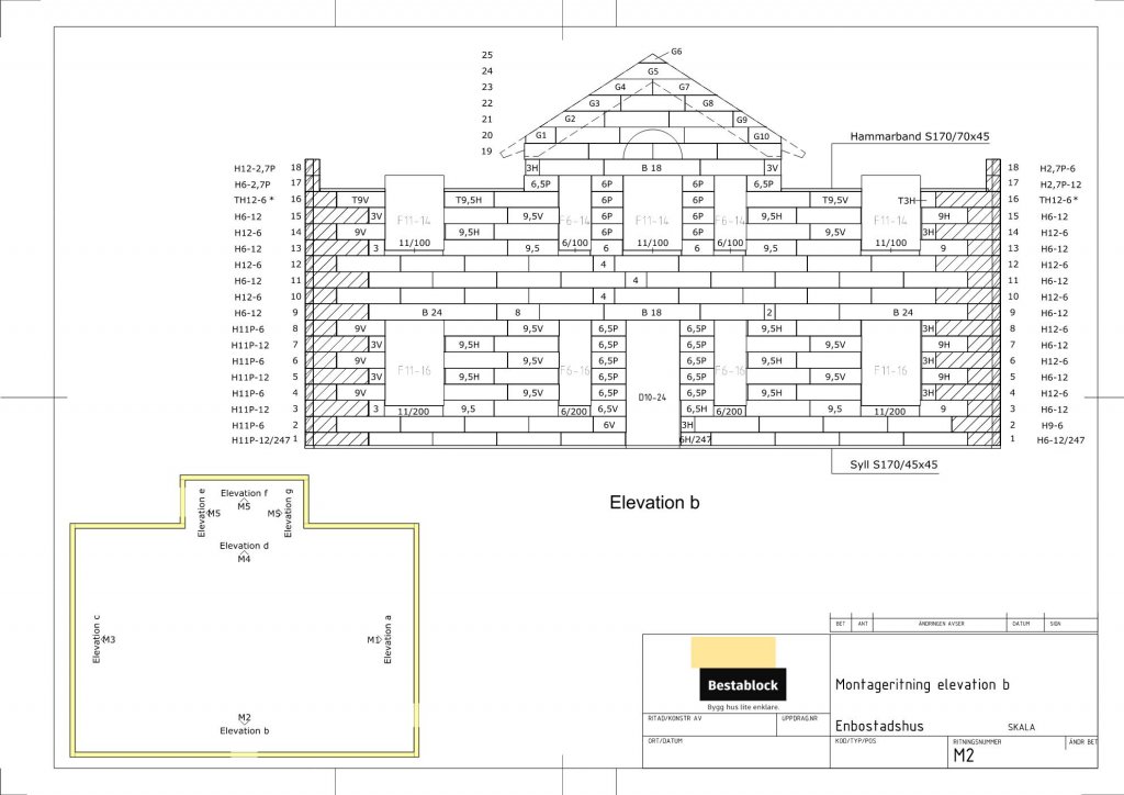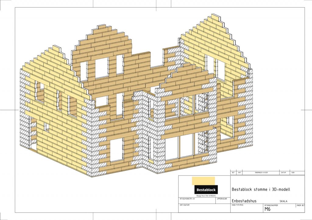 Varje stomme med Bestablock är uppbyggt av ett antal olika block – kombinerade och anpassade för att passa varje byggnad. Ingen bearbetning behövs, dvs man behöver inte såga eller göra något med blocken – bara montera dem enligt monteringsritningen. Lätt som att bygga med legoklossar!
